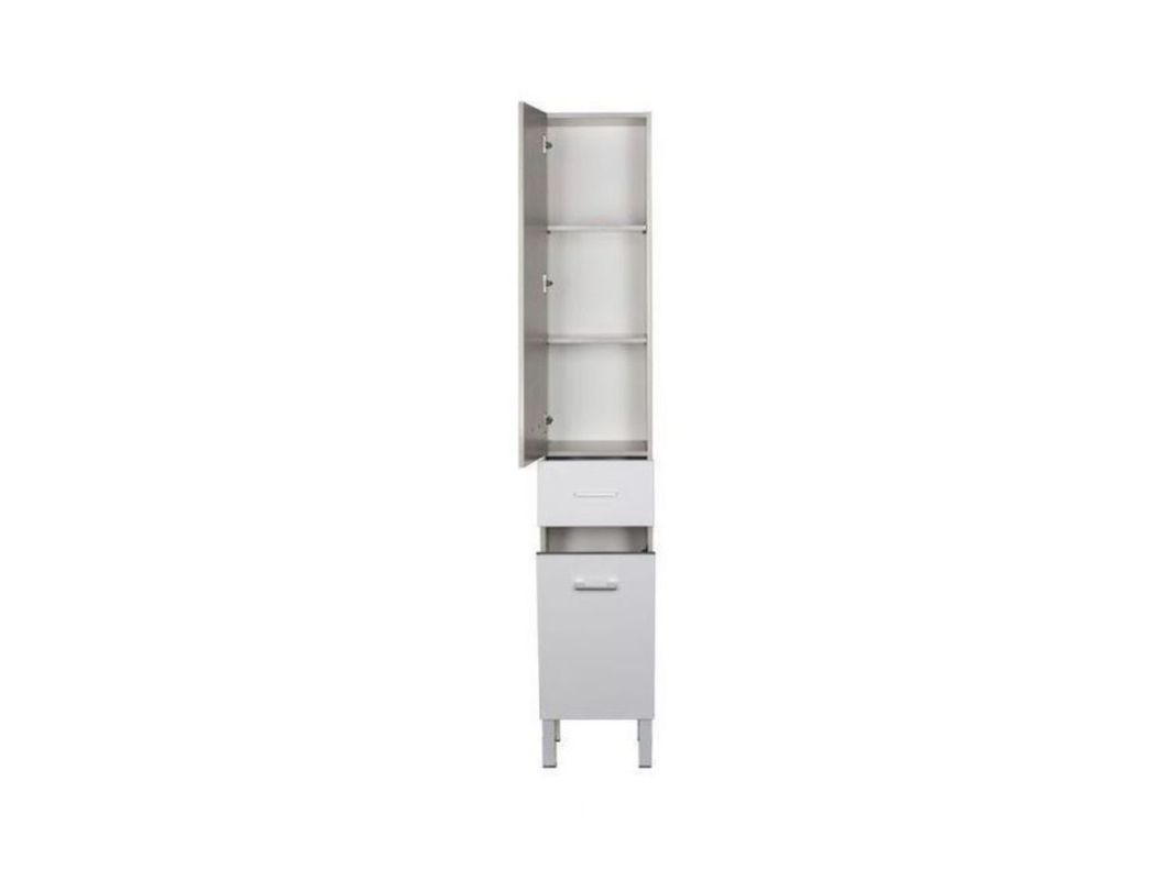 За верхней распашной дверцей пенала Aquanet Верона находится несколько полочек для хранения банных полотенец и косметических средств. В средней части расположен небольшой выдвижной ящик для мелочей: бомбочек для ванны или предметов гигиены. Нижняя часть – специальное отделение со встроенной бельевой корзиной. Благодаря такой организации пространства белье, ожидающее стирки, скрыто от посторонних глаз и занимает минимум места. Корпус выполнен из водонепроницаемого ЛДСП, фасады – из МДФ, при этом они имеют уникальное акриловое покрытие, повышающее устойчивость пенала к воздействию влажной среды.