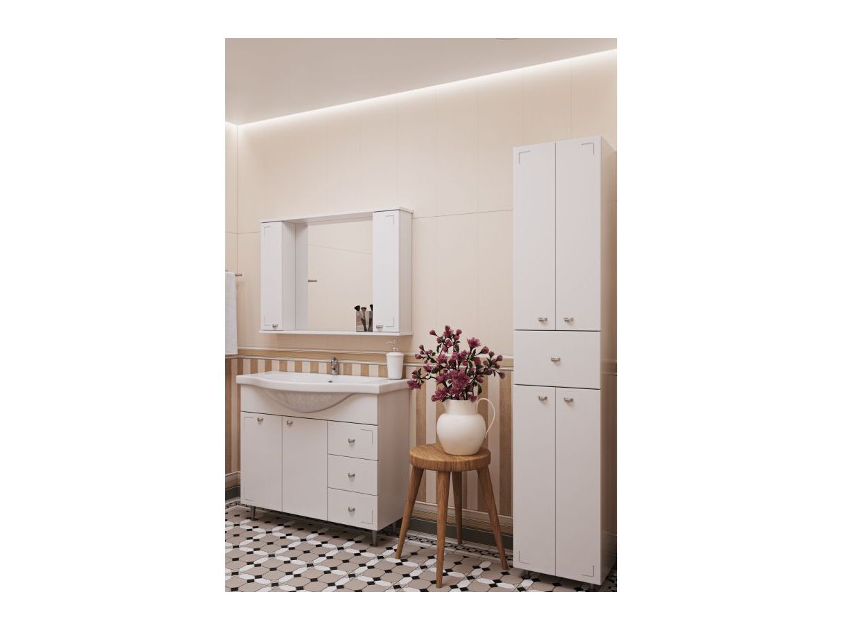 В серию КЛАССИК входят тумбы под умывальник от 45 см до 100 см в ширину. В серии присутствует угловая тумба, подвесная, а также тумбы с корзиной для белья, что влияет на экономичность пространства. Навесные шкафы от 50 см до 100 см. Также в серию вошли зеркальные шкафы и шкафы без зеркала.