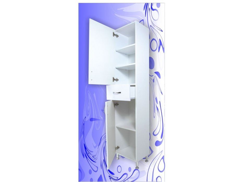 Шкаф функциональный и практичный: в верхней части изделия находится вместительное отделение с двумя полками, в центре – выдвижной ящик, куда можно поместить косметические средства или хранить чистые полотенца.