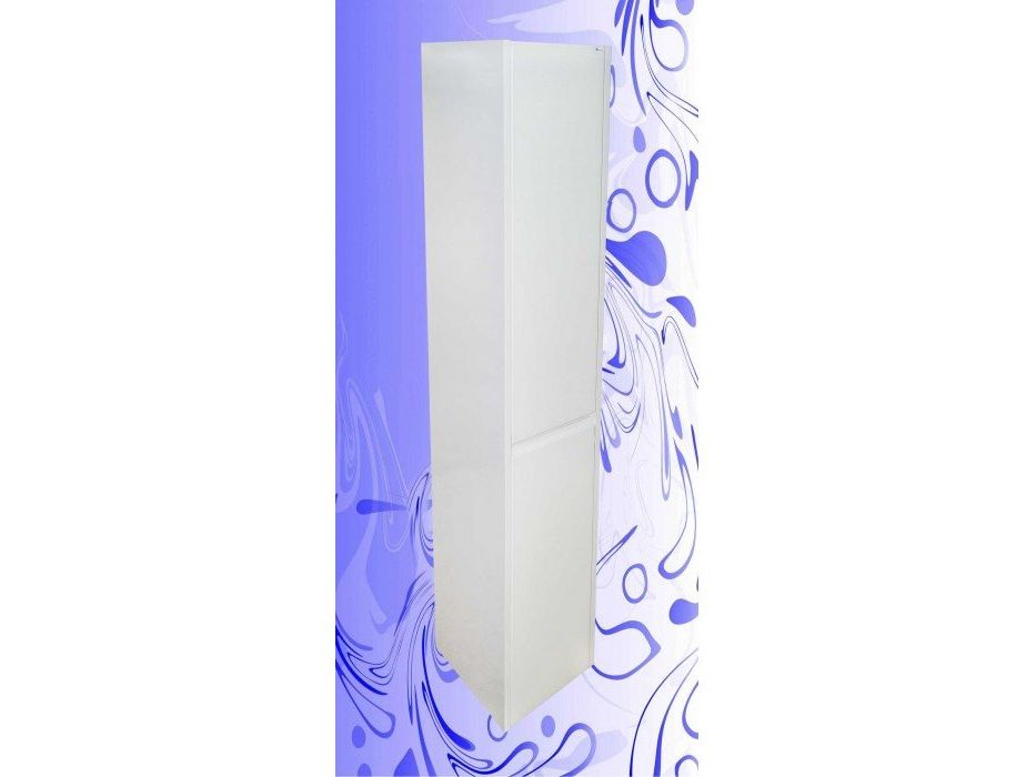 Пенал "Валенсия" отличает модный и интересный фасад из ультро белого стекла на основе МДФ, вместо традиционных ручек на нижней и верхней панели фасадов горизонтальные выемки.