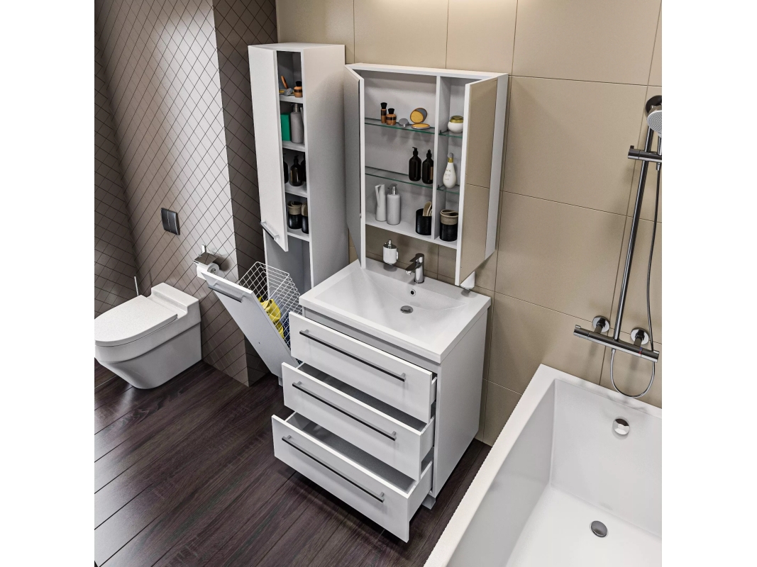Классический пенал со множеством закрытых полок, который станет универсальным дополнением любой ванной комнаты благодаря лаконичному дизайну и белому глянцевому корпусу из МДФ. Это прекрасный образец практичности, функциональности и современной эстетики, который прослужит долгие годы. Дополнительное преимущество пенала - его возможность гармонично дополнять уже существующую обстановку ванной комнаты или становиться частью абсолютно нового дизайна. Комфорт и удобство его использования обеспечиваются качественной и надежной фурнитурой.