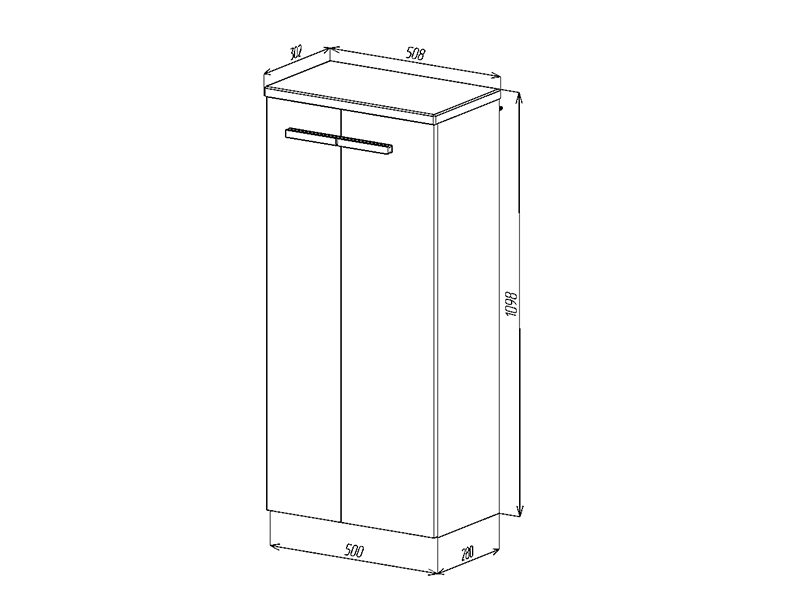 Габаритные размеры ШxВxГ: 510x1100x300 мм