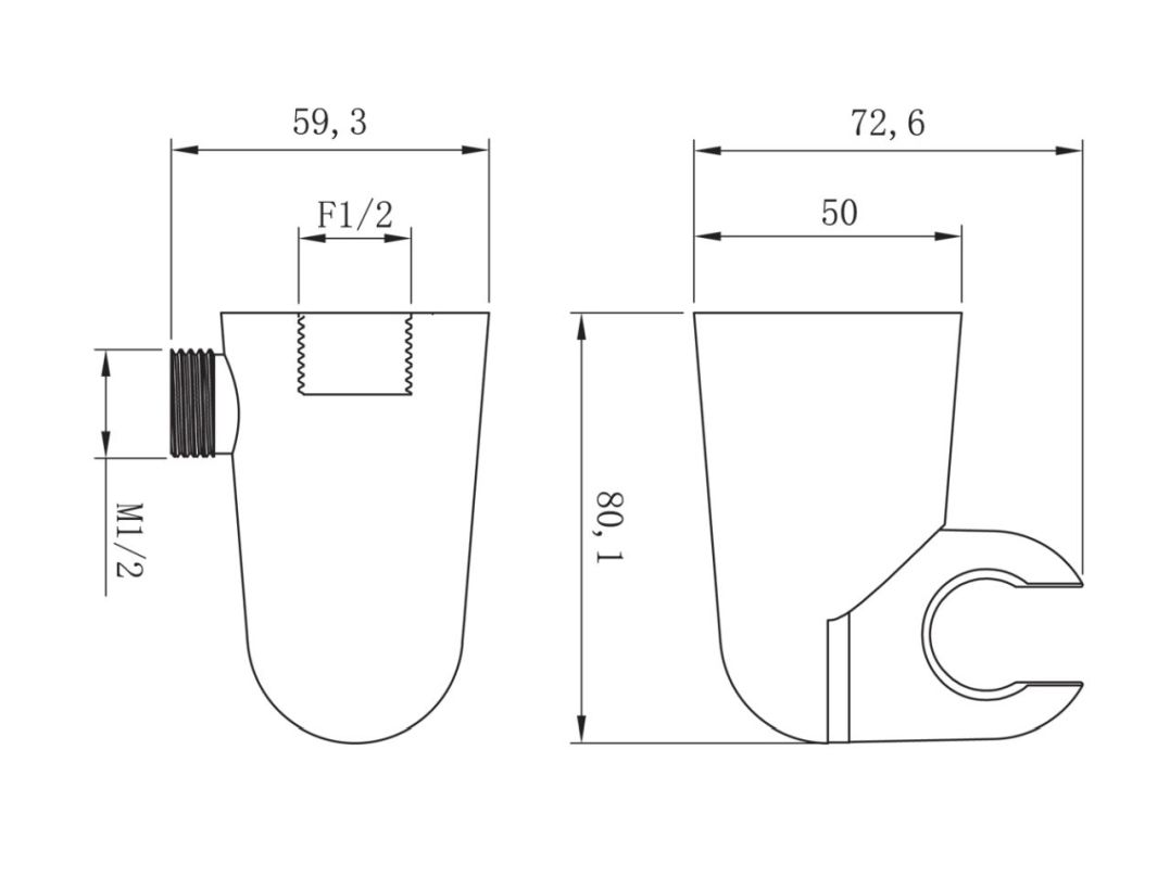 - Размер отверстий для подсоединения F1/2''