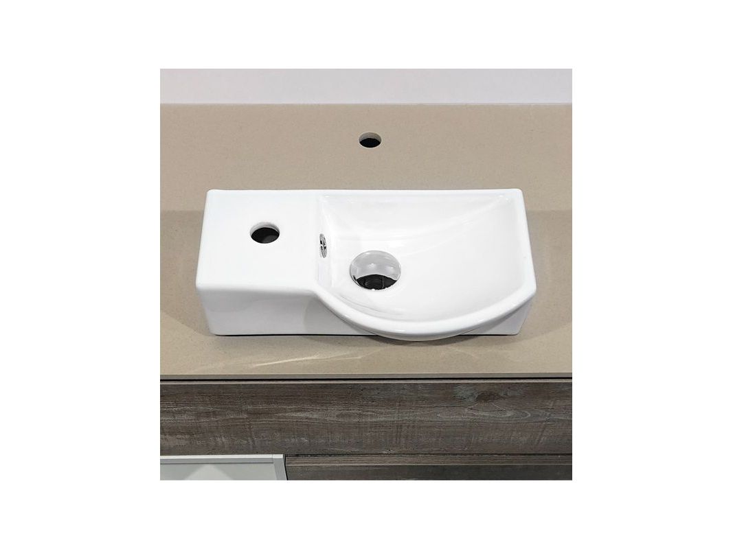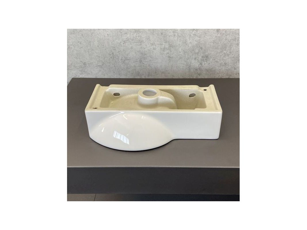 Ориентировка раковины по чаше. Чаша справа, отверстие под смеситель с левой стороны, с переливом. Крепится с помощью винтов.