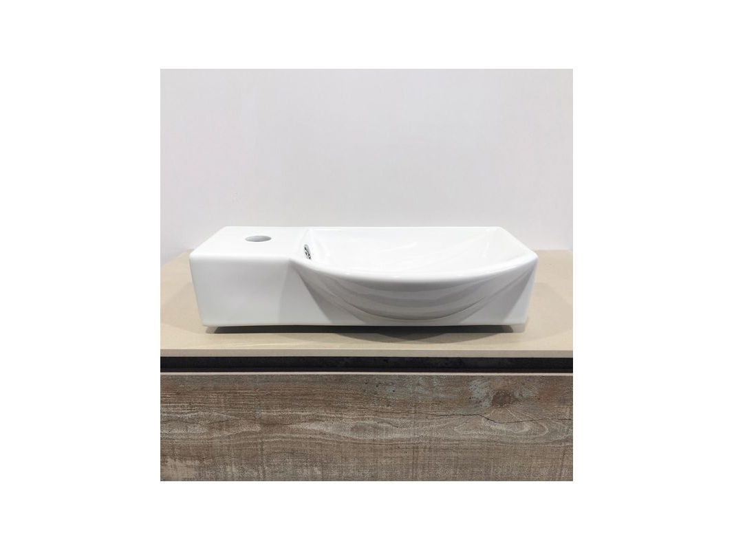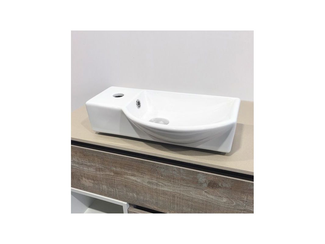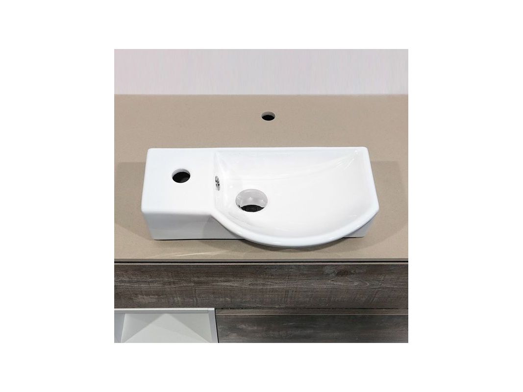 Ориентировка раковины по чаше. Чаша справа, отверстие под смеситель с левой стороны, с переливом. Крепится с помощью винтов.