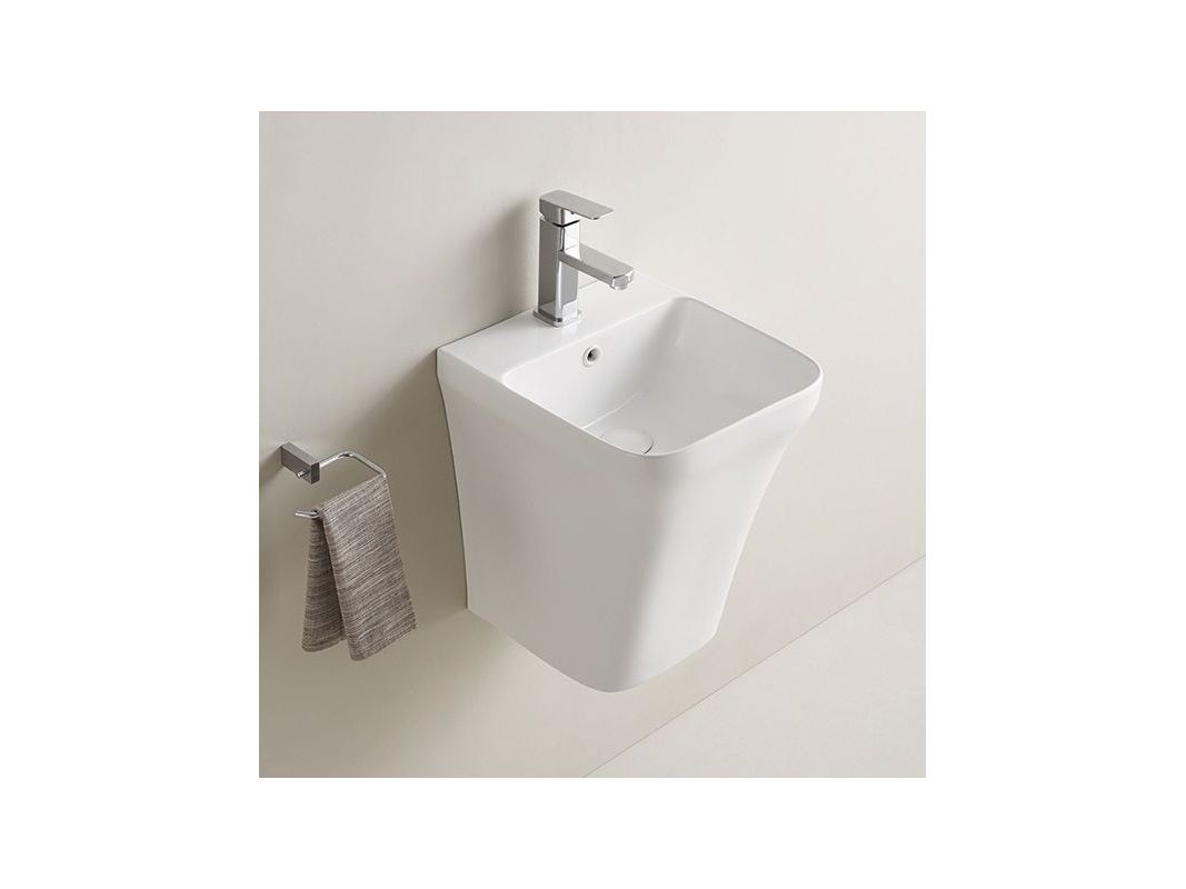 Подвесная раковина моноблок позволяет скрыть подведенные коммуникации