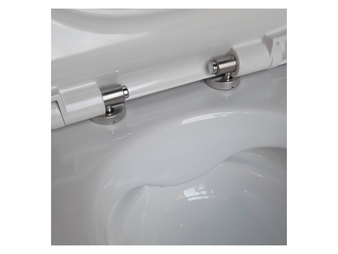 Ультратонкое сиденье из дюропласта устойчиво к царапинам, легко снимается для уборки одним нажатием на кнопки сиденья. Механизм Soft Close обеспечивает плавное и бесшумное закрытие крышки унитаза, без лишних контактов и усилий.