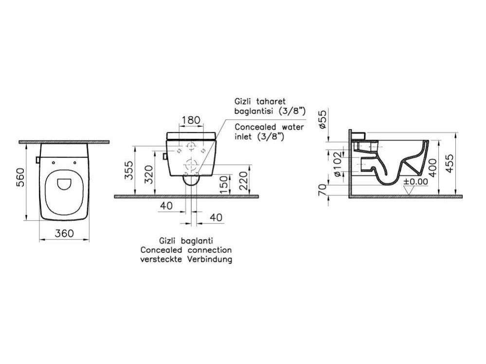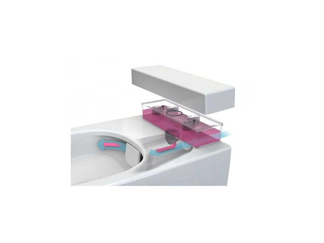 Система VitrAfresh со встроенным смесителем.Система Rim-ex без ободка. Он легко чистится и максимально гигиеничен. Лёгкое очищение одним движением. Смеситель, встроенный в унитаз, позволяет пользователям смешивать горячую и холодную воду, поступающую из бидетки. Из ёмкости для жидкого моющего средства, расположенной в верхней части конструкции унитаза, в воду при смыве добавляется дезинфицирующее средство, дающее максимальную гигиеничность и освежение воздуха при каждом смыве. Дозатор жидкого моющего средства можно использовать для гипохлористых чистящих средств (с содержанием хлорной извести согласно показателю рН вплоть до 12,5), неабразивных моющих средств и отдушек.