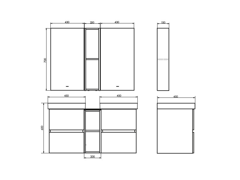 Модуль вставка шириной 200 мм с полками открытого хранения.