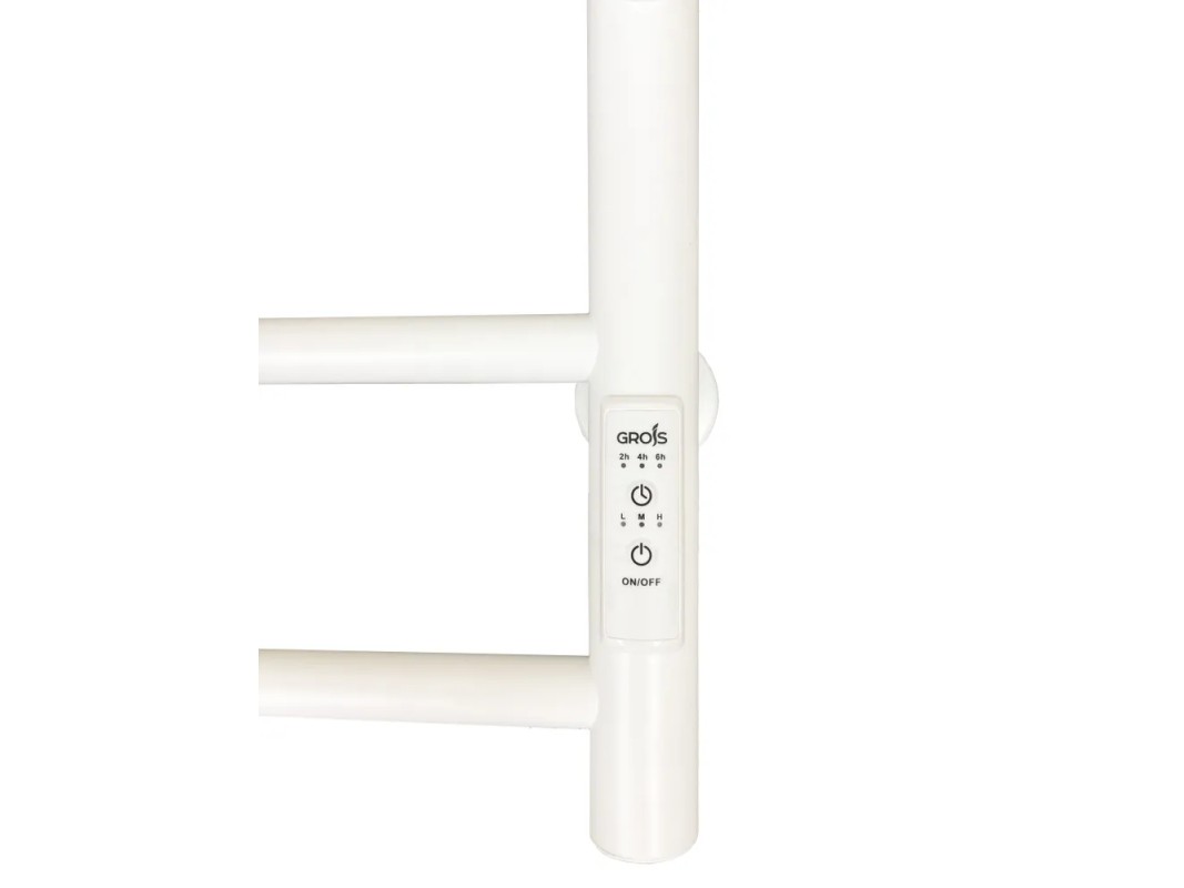 Полотенцесушитель электрический «GROIS» Gamma GR-136 400×600 П6 белый матовый подключение справа (правый) изготовлен из углеродистой стали с использованием профильных труб круглого сечения. Полотенцесушитель имеет нагревательный элемент кабельного типа. Полотенцесушитель оснащен терморегулятором с возможностью регулировки времени работы и мощности нагрева. Изделие окрашивается порошковой эмалью белого цвета с приятной матовой фактурой, что обеспечивает антикоррозийные свойства и современный внешний вид. Электрический полотенцесушитель Gamma имеет высокую степень теплоотдачи, могут выступать в роли нагревающего дополнительного элемента в вашей комнате, красивый и стильный дизайн электрического полотенцесушителя будет гармонировать с мебелью вашего пространства, добавлять стилистику ванной комнаты.
