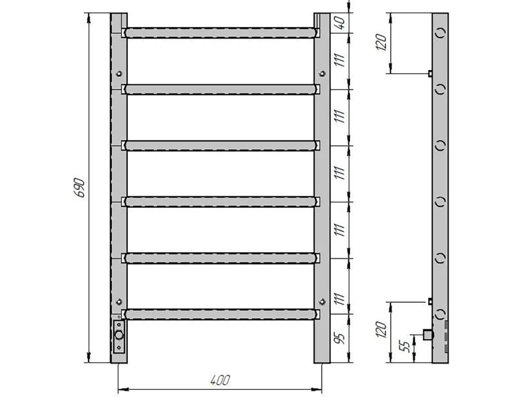 Полотенцесушитель электрический «GROIS» Laura GR-131 400×700 П6 белый матовый подключение слева изготовлен из углеродистой стали с использованием профильных труб круглого сечения. Полотенцесушитель имеет нагревательный элемент кабельного типа. Полотенцесушитель оснащен терморегулятором с возможностью регулировки времени работы и мощности нагрева. Изделие окрашивается порошковой эмалью белого цвета с приятной матовой фактурой, что обеспечивает антикоррозийные свойства и современный внешний вид. Электрический полотенцесушитель Laura имеет высокую степень теплоотдачи, могут выступать в роли нагревающего дополнительного элемента в вашей комнате, красивый и стильный дизайн электрического полотенцесушителя будет гармонировать с мебелью вашего пространства, добавлять стилистику ванной комнаты.