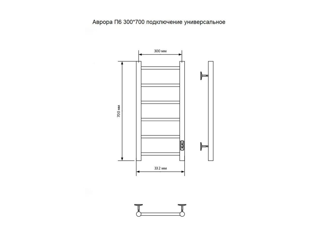 Электрический полотенцесушитель САНПРИЗ Аврора П6 300х700 подключение универсальное изготовлен из высококачественной нержавеющей стали AISI 304, зарекомендовавшей себя надежностью и длительностью эксплуатации. Толщина стенки трубы 1,5 мм., оптимальна для изделия с сухим ТЭНом (экономия энергии, долговечность). Полотенцесушитель электрический Аврора имеет нагревательный элемент кабельного типа, оснащен терморегулятором с возможностью регулировки температуры и таймером отключения. Постоянное излучаемое тепло способствует созданию одинаковой и комфортной температуры в помещении. Полотенцесушитель удобно размещается на стене и станет украшением интерьера ванной комнаты