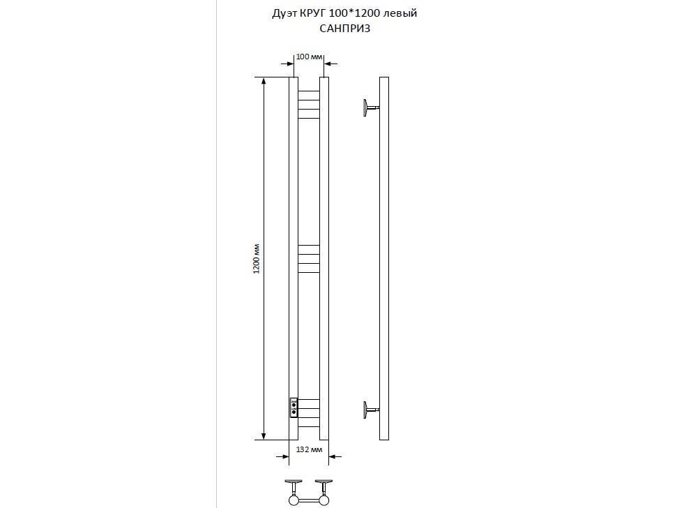 Полотенцесушитель — 1 шт.; модуль скрытого подключения – 1 шт.; кабель для подключения к сети – 1 шт.; крепление к стене — 4 шт.; технический паспорт — 1 шт.
