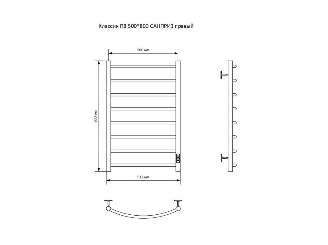 Электрический полотенцесушитель ТМ САНПРИЗ изготовлен из качественной конструкционной углеродистой стали. Изделие окрашивается порошковой эмалью черного или белого цвета с приятной матовой фактурой, что обеспечивает антикоррозийные свойства и современный внешний вид. Полотенцесушитель имеет нагревательный элемент кабельного типа, компактный блок управления оснащен регулировкой температуры и таймером отключения. Постоянное излучаемое тепло способствует созданию одинаковой и комфортной температуры в помещении. Полотенцесушитель удобно размещается на стене и станет украшением интерьера ванной комнаты.