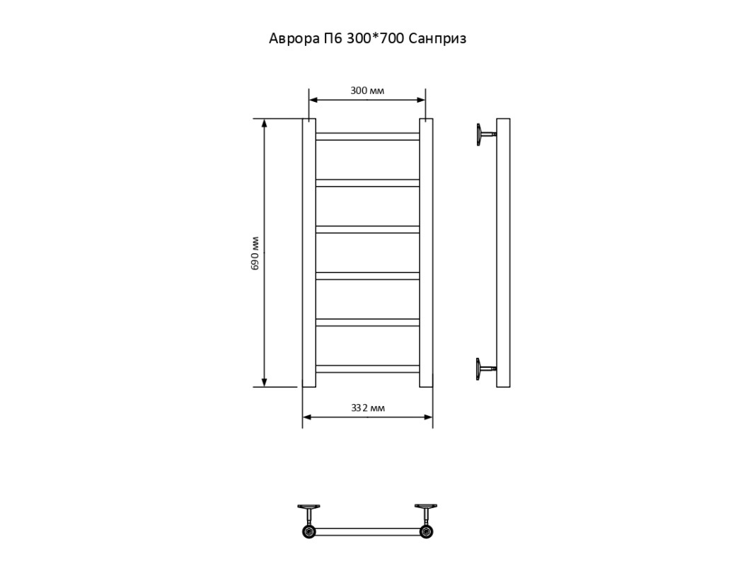 Полотенцесушитель — 1 шт., заглушка 1/2″ НР – 1 шт., воздухоотводчик 1/2″ НР – 1 шт., крепление к стене — 4 шт., гарантийный талон — 1 шт.
