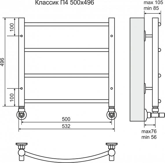 Компания «ТЕРМИНУС» предлагает водяной полотенцесушитель Классик эконом П4. Устройство изготовлено из стали марки AISI 304L и подходит для автономного отопления или ГВС частных домов и коттеджей, централизованных систем многоквартирных домов. Полетенцесушитель Классик эконом П4: