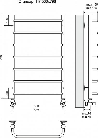 Компания «ТЕРМИНУС» предлагает водяной полотенцесушитель Стандарт П7. Устройство изготовлено из стали марки AISI 304L и подходит для автономного отопления или ГВС частных домов и коттеджей, централизованных систем многоквартирных домов. Полетенцесушитель Стандарт П7: