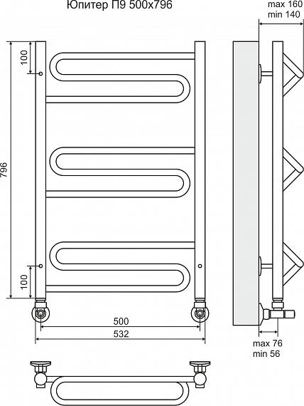 Компания «ТЕРМИНУС» предлагает водяной полотенцесушитель Юпитер П9 (3-3-3). Устройство изготовлено из стали марки AISI 304L и подходит для автономного отопления или ГВС частных домов и коттеджей, централизованных систем многоквартирных домов. Полетенцесушитель Юпитер П9 (3-3-3):