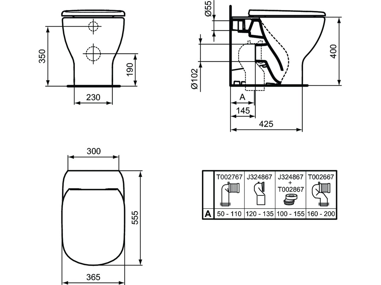 TESI AquaBlade® Напольный пристенный унитаз соло, горизонтальный выпуск (универсальный), глубокий смыв, сидение и крышка T3527V3 заказывается дополнительно, с крепежом TT0257919