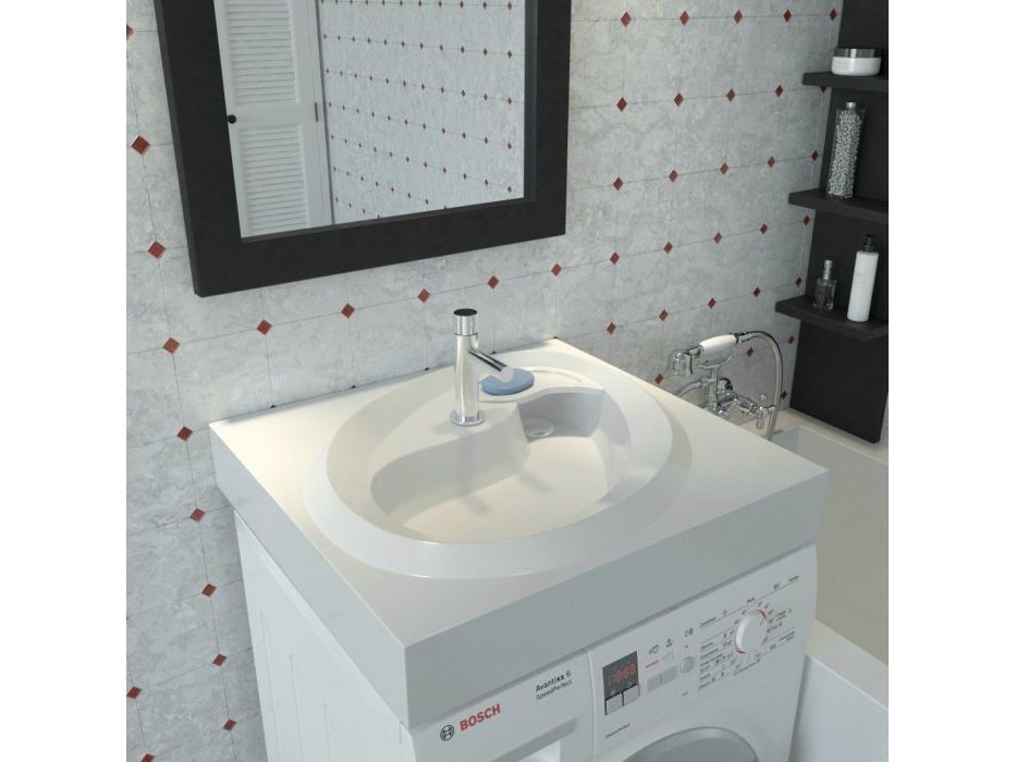 Большой популярностью пользуются умывальники с размещением над стиральной машиной.