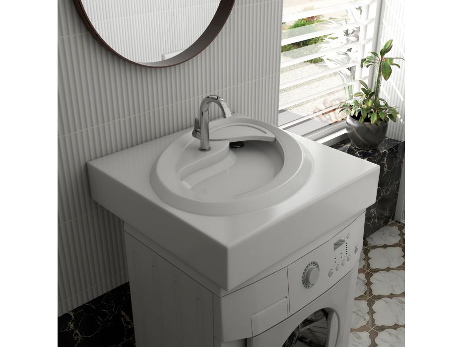 Прямойгольный изящный умывальник Ameliшириной 60см, который позволит рационально использовать пространство над стиральной машиной.