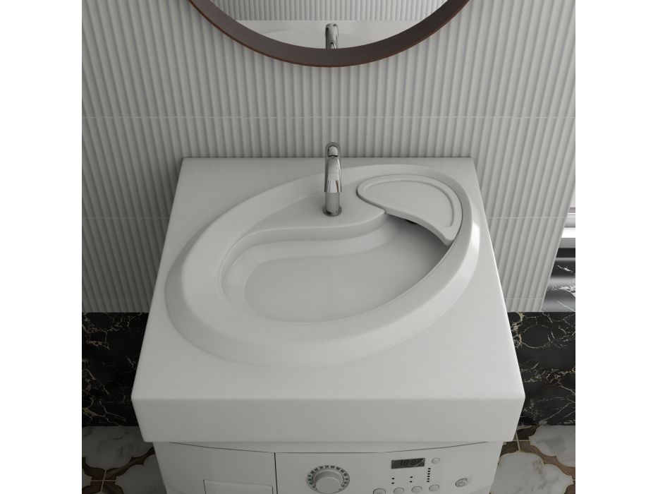 Большой популярностью пользуются умывальники с размещением над стиральной машиной.