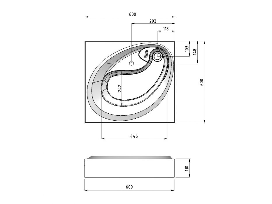 Сливное отверстие диаметром 4см закрывается декоративной крышкой.