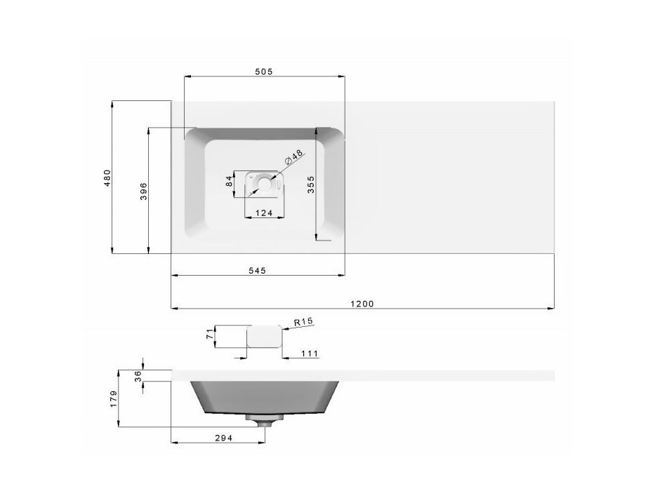 Имеется отверстие под смеситель.