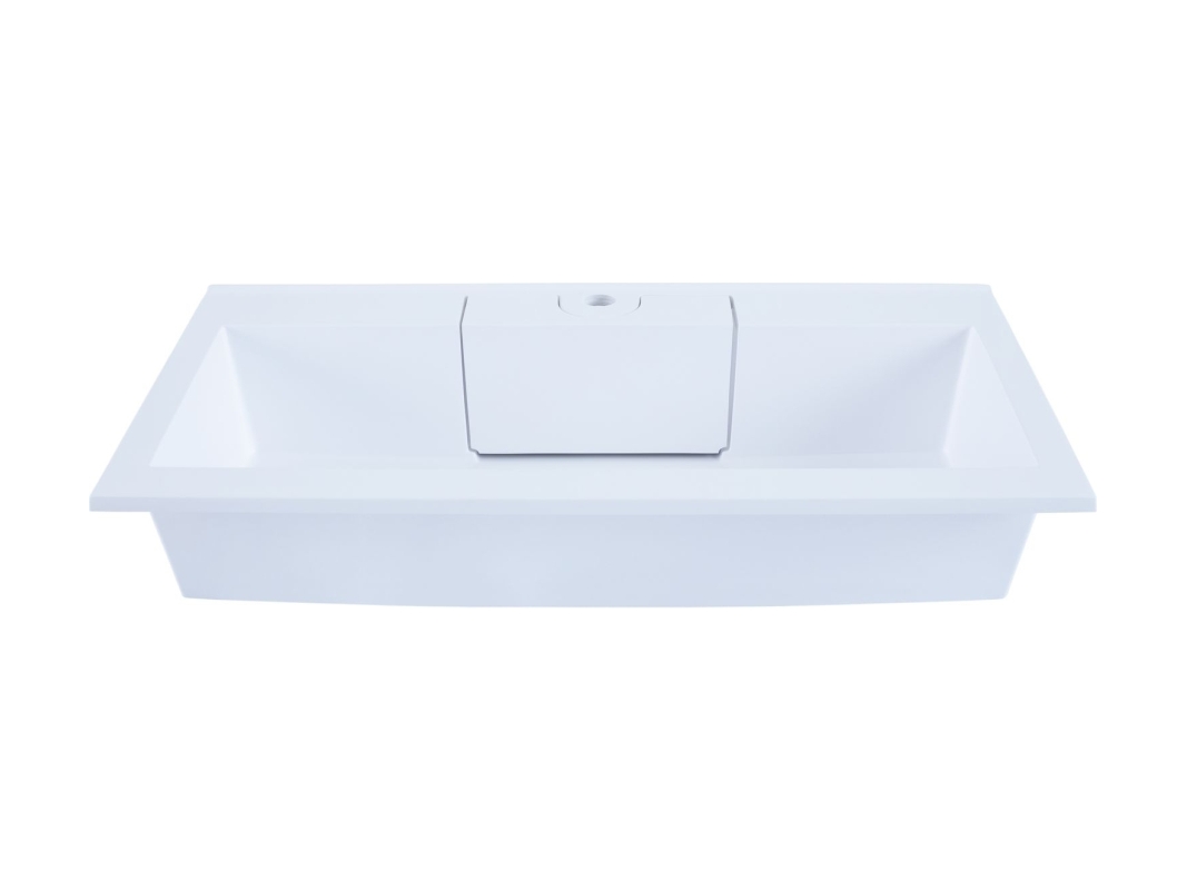 Раковина «Фортуна» имеет уникальную конструкцию слива: вместо привычного расположения по центру, он находится в скрытом отсеке под съемной крышкой. Смещение слива и сифона к стене, в сторону канализационного отвода, избавляет от необходимости менять устройство верхнего ящика тумбы и делать в нем выемку. Теперь он свободно передвигается под раковиной и имеет большую вместимость.