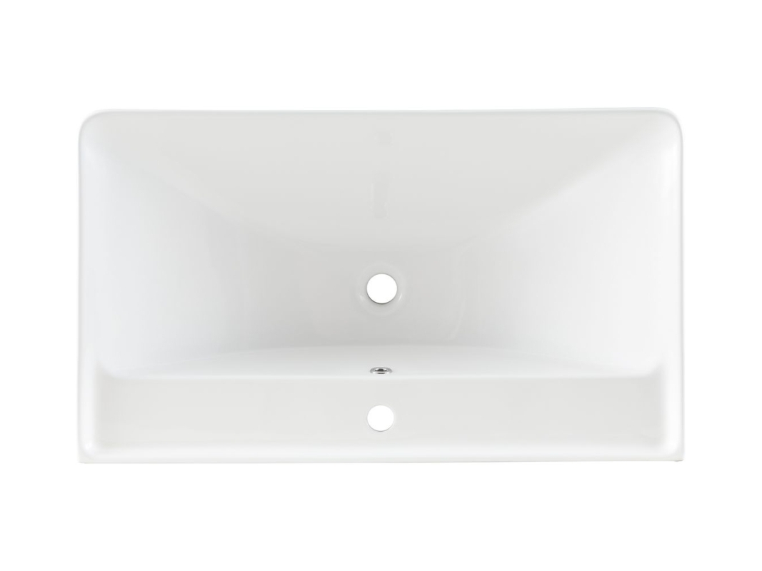 Корпус белого цвета выполнен в стиле модерн. Материал изготовления — керамика, которая не накапливает запахи, хорошо поглощает звуки и отличается экологичностью. По центру бортика располагается готовое отверстие под смеситель. Эргономика чаши с высотой стенок 21 см продумана до мелочей, благодаря чему вода уходит в слив в считанные минуты. В комплект входят инструкция и гарантийный талон.