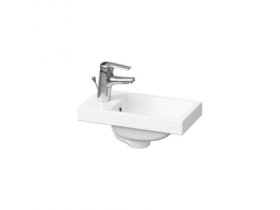 Модель умывальникаторговой марки Cersanit серии Como шириной 40 см представляет собой прямоугольную раковину белого цвета с двумя отверстиями под слив/перелив и под смеситель в центре.
