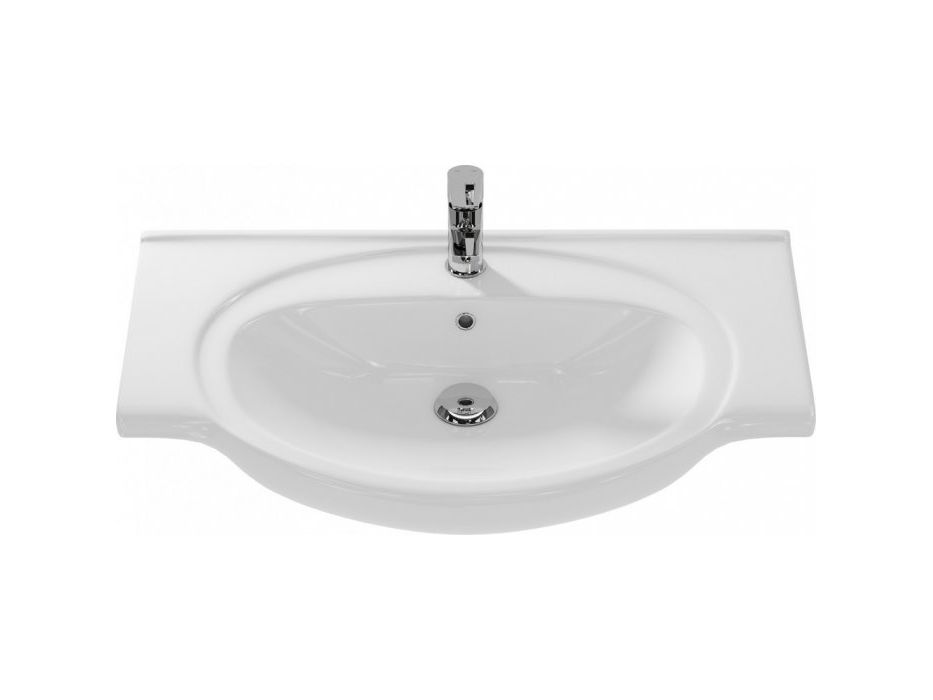 Модель умывальникаторговой марки Cersanit серии Эрика шириной 80 см представляет собой полукруглую раковину белого цвета с двумя отверстиями под слив/перелив и под смеситель в центре.