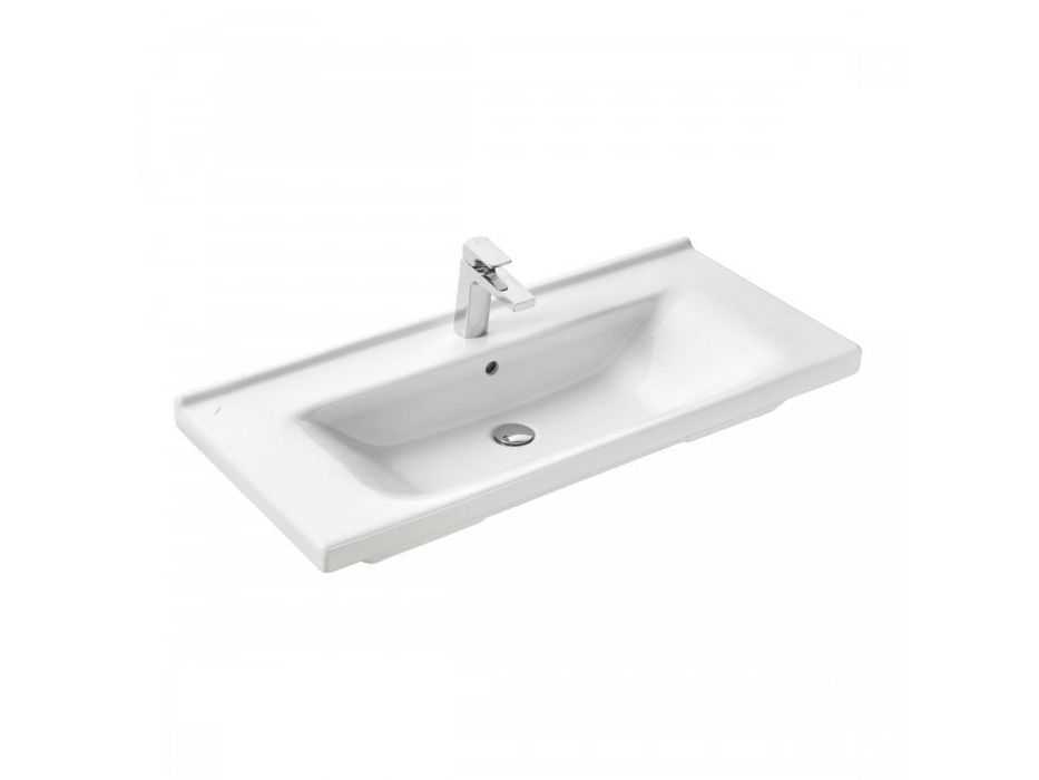 Прямоугольный умывальник "Миранда 100" с удобной чашей и широкими бортиками позволяет практично использовать пространство.