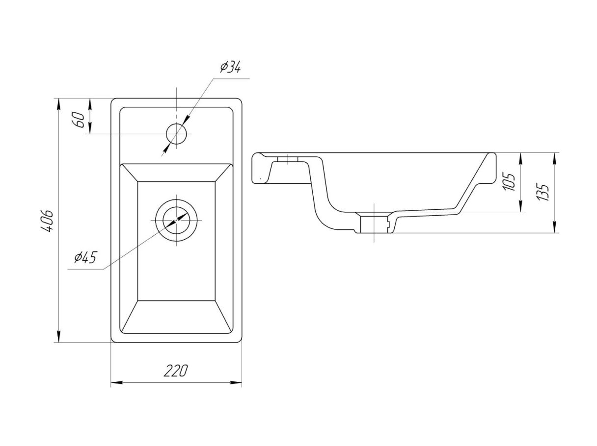 Компактный умывальник прямоугольной формы со встроенным сливом-переливом