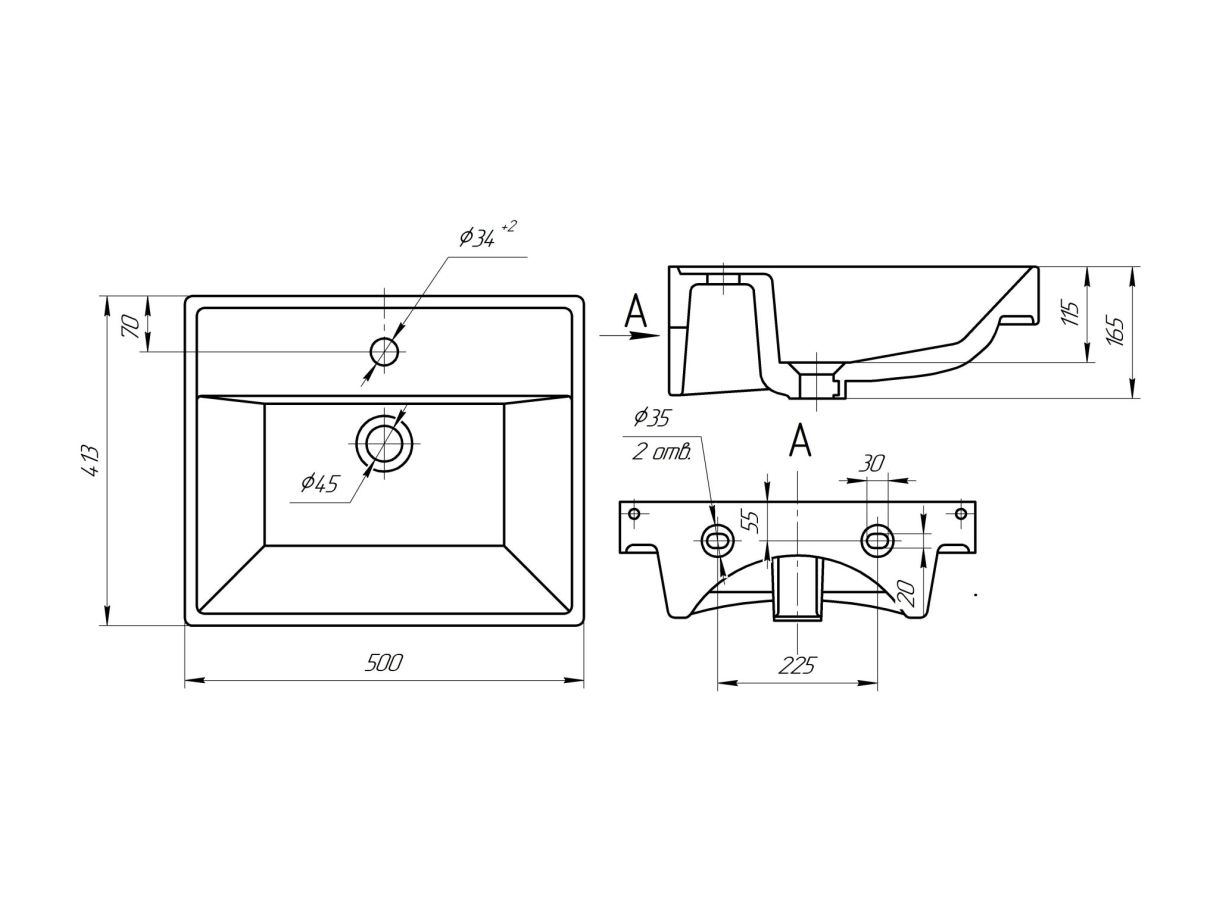 Компактный умывальник прямоугольной формы со встроенным сливом-переливом