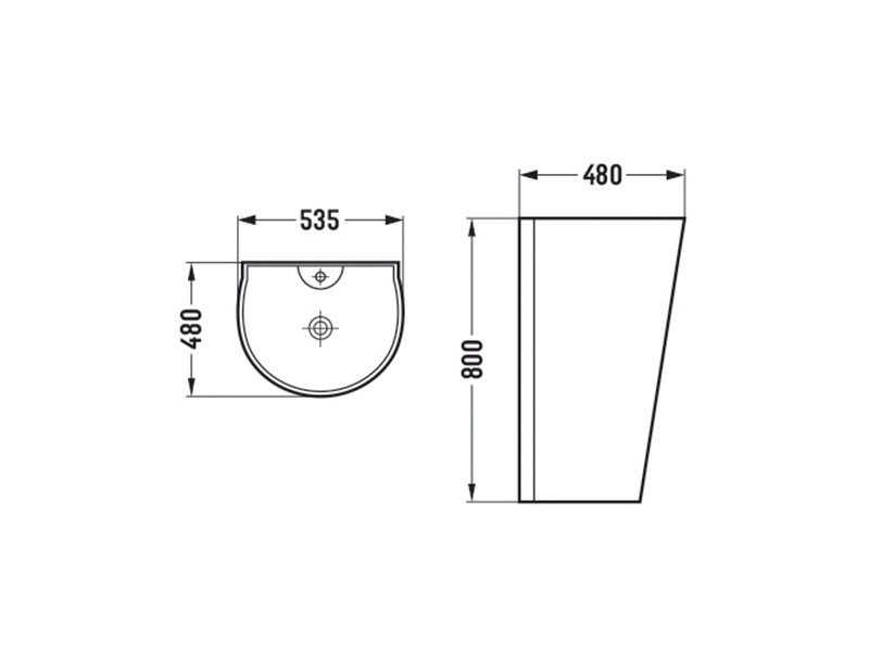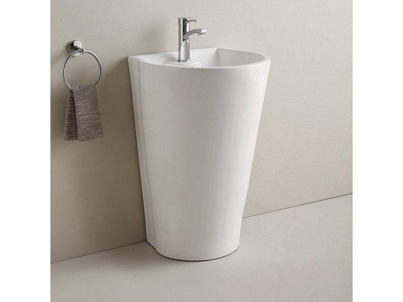 Напольная раковина моноблок позволяет скрыть подведенные коммуникации