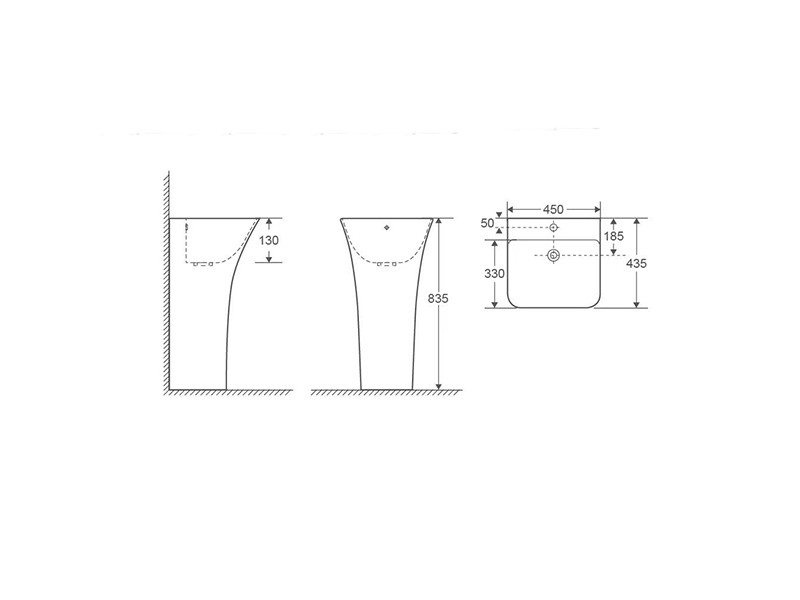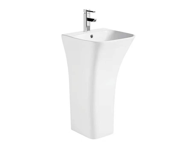 Напольная раковина моноблок позволяет скрыть подведенные коммуникации