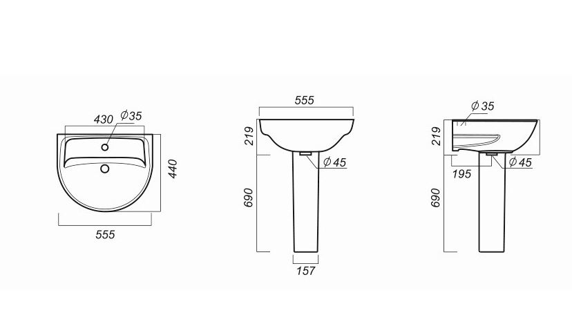 Комплектация: умывальник, кольцо перелива возможно изготовление без отверстия под смеситель