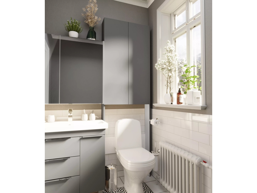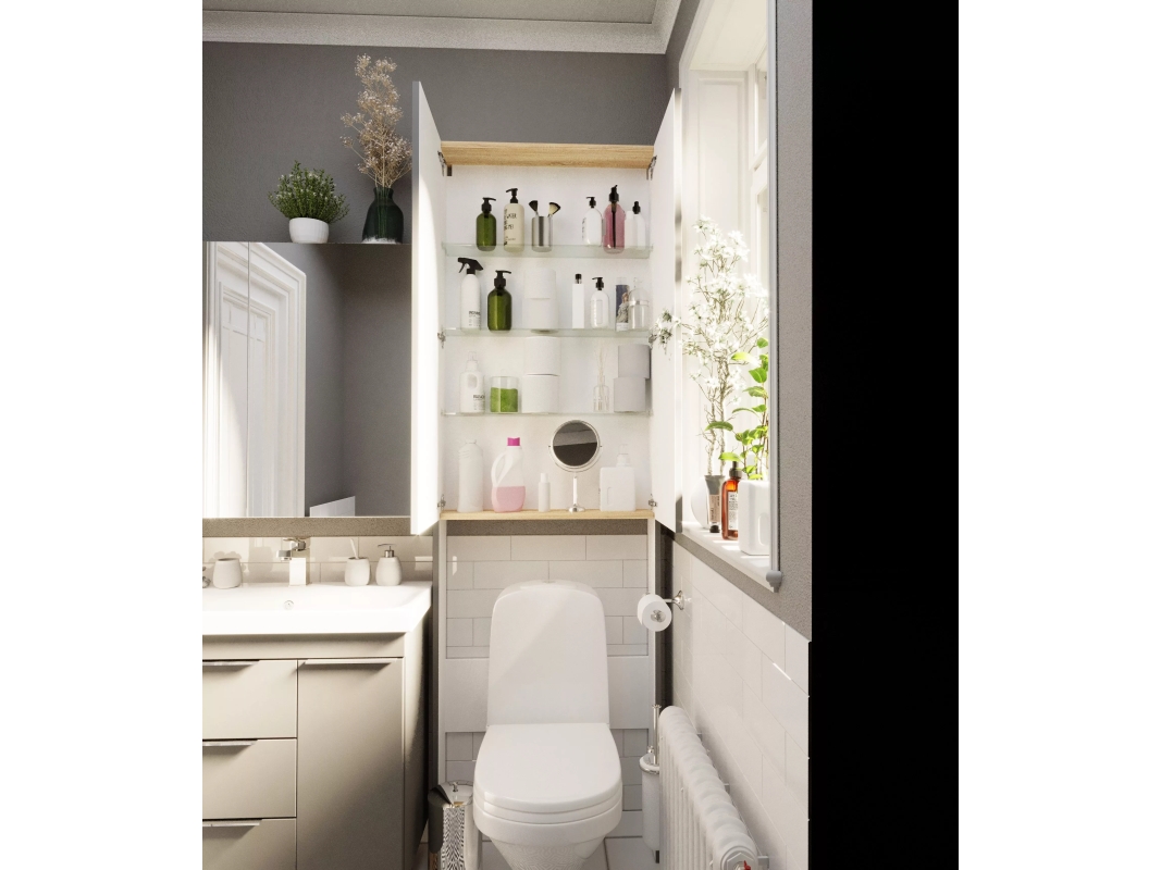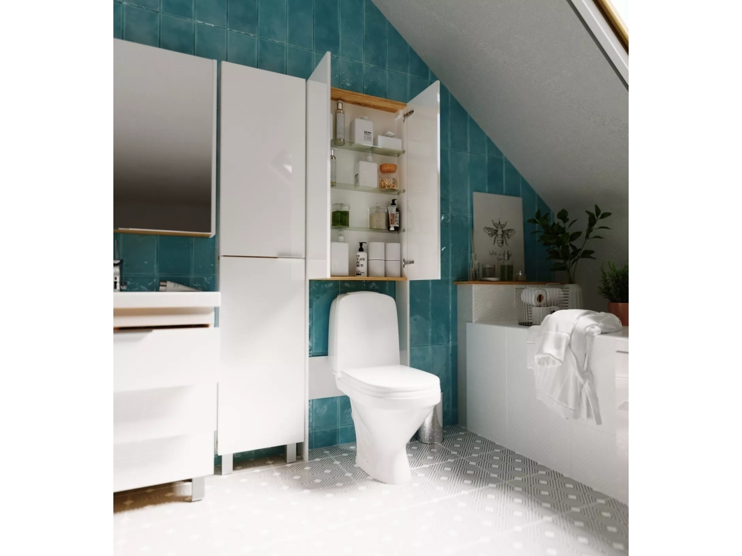 Шкаф, который представляет собой невероятно эффектную, стильную и одновременно функциональную систему хранения для любой ванной комнаты вне зависимости от ее стилистики и цветового оформления. Комбинация открытых и закрытых шкафов и полок позволяет с одной стороны надежно скрыть от глаз все лишнее, а с другой - разместить аксессуары и предметы декора, преображающие пространство и подчеркивающие его индивидуальность. Благодаря особой продуманной конструкции шкаф будет уместен даже в небольших ванных комнатах, в которых важно задействовать максимум свободного пространства.