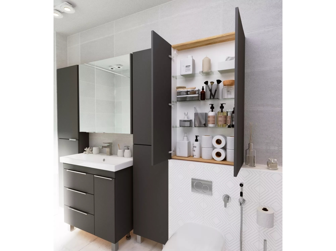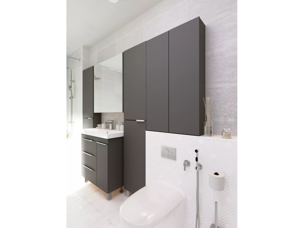 Шкаф, который представляет собой невероятно эффектную, стильную и одновременно функциональную систему хранения для любой ванной комнаты вне зависимости от ее стилистики и цветового оформления. Комбинация открытых и закрытых шкафов и полок позволяет с одной стороны надежно скрыть от глаз все лишнее, а с другой - разместить аксессуары и предметы декора, преображающие пространство и подчеркивающие его индивидуальность. Благодаря особой продуманной конструкции шкаф будет уместен даже в небольших ванных комнатах, в которых важно задействовать максимум свободного пространства.