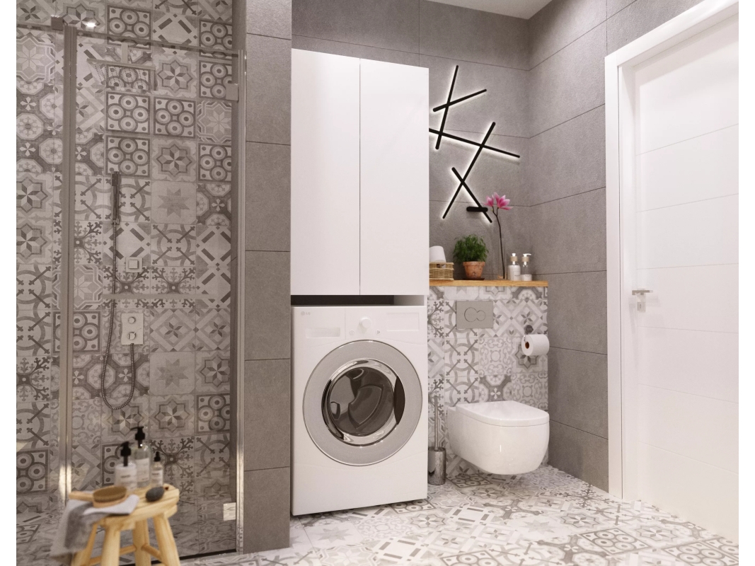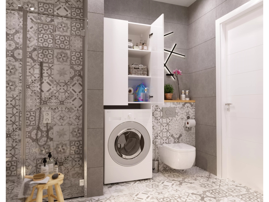 Вместительный, функциональный и лаконичный, этот шкаф на стиральную машину в классическом белом цвете станет настоящей находкой для тех, кто стремится максимально практично использовать площадь ванной комнаты. Благодаря вместительным закрытым полкам он помогает максимально разгрузить окружающее пространство и скрыть от глаз все лишнее - косметику, бытовую химию и любые другие предметы. Минималистичный дизайн без лишних деталей позволяет гармонично вписать его в любую окружающую обстановку.