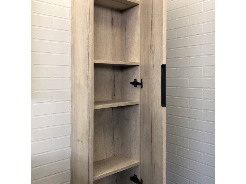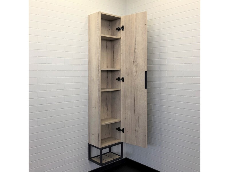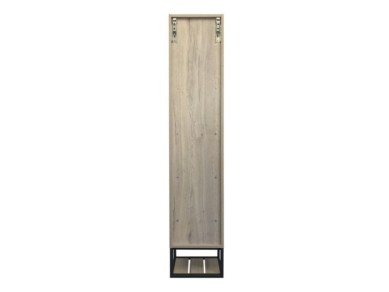 Подвесной шкаф - со створкой и пространством для открытого хранения. Фасад и корпус из влагостойкого ЛДСП. Пространство открытого хранения на основе - металлическая рама из окрашенного металла в цвет серый графит. Петли створки с механизмами плавного закрывания. Створка может быть подвешена с правым или левым расположением петель.