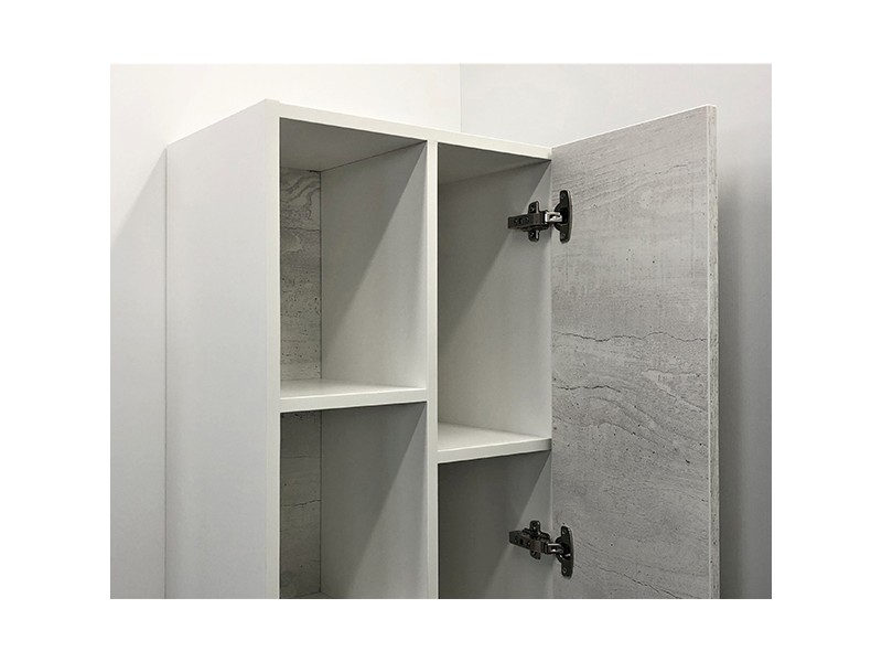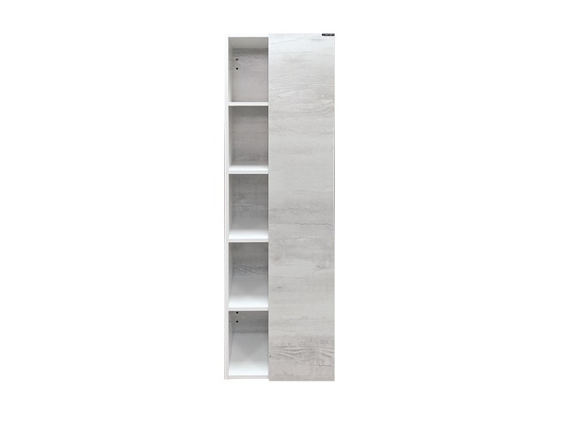 Подвесная шкаф колонна с одной створкой и пространством для открытого хранения. Створка оснащена петлями с плавным закрыванием. Фасады из влагостойкого ЛДСП Дуб белый. Корпус из влагостойкого ЛДСП дуб белый и белый матовый. За створкой три горизонтальные полки Шкаф-колонна универсальна, может быть подвешена в правом и левом варианте.