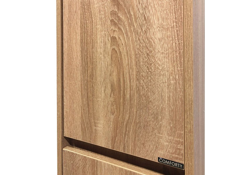Подвесная шкаф-колонна отличное решение для хранения разных предметов необходимых в ванной комнате. За верхней дверцей две полки, за нижней одна. Дверцы могут быть подвешены как в правом, там и в левом исполнении. Петли оборудованы механизмами плавного закрывания.