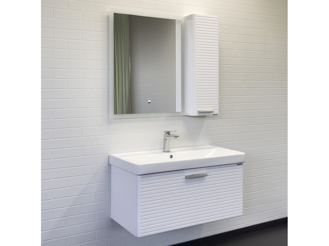 Подвесной шкаф для комплектации с зеркалом из коллекции Танжер отличное решение для хранения разных предметов необходимых в ванной комнате. За створками две горизонтальные полки. Петли с механизмами плавного закрывания.