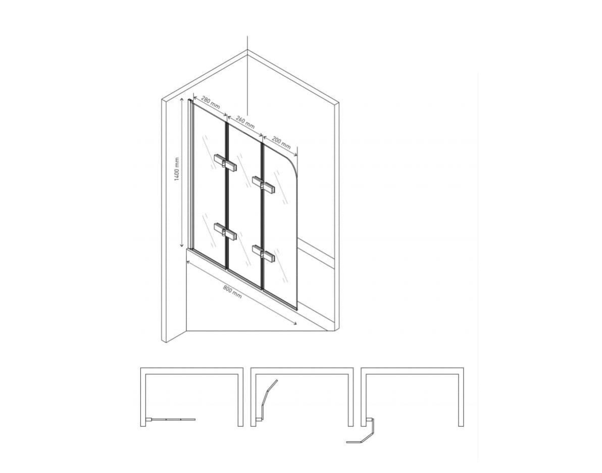 Безопасное закаленное стекло DIN EN 12150-1 Водоотталкивающее покрытие EasyClean Шторка складного типа Допуск на установку 10мм Гарантия: 5 лет - профиль,10 лет-стекло, 2 года- уплотнитель
