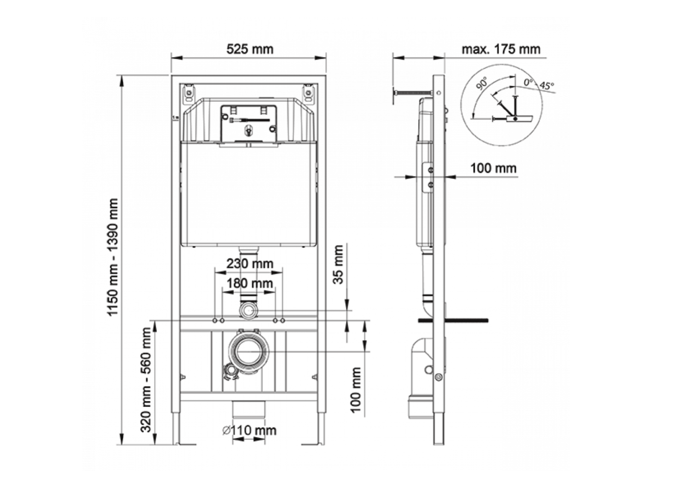 Межосевое расстояние под шпильки для подвеса унитаза 18 и 23 см.
