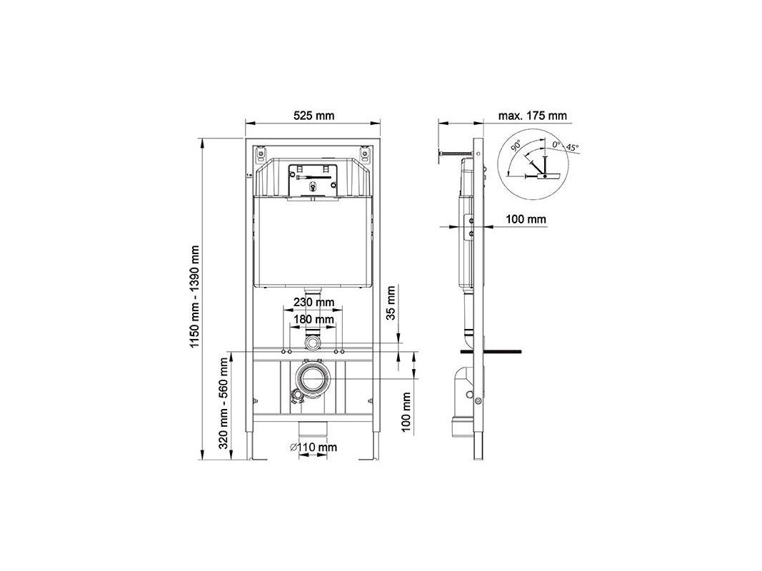 Межосевое расстояние под шпильки для подвеса унитаза 18 и 23 см.