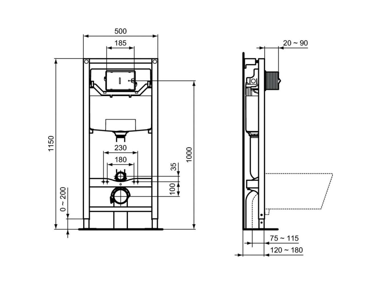 R027767 PROSYS 120 P Встраиваемая инсталляция для монтажа подвесных унитазов. Для монтажа с гипсокартонной стеной. Рама тестирована нагрузкой 400 кг; устойчива к коррозии и царапинам. Легкая и быстрая установка при помощи системы EasyFix system. Сливной патрубок регулируется по глубине. Регулируемая высота от 0 до 200 мм. Минимальная толщина 180 мм. Встраиваемый бачок с фронтальным пневматическим управлением. Двойной смыв, пред-установка 6/3 л. Три варианта объема смыва с возможностью быстрой регулировки - 4/2, 6/3 или 7/3 л. Полипропиленовый бачок, устойчивый к термальным перепадам; прокладка против конденсата в комплекте. Технология SmartValve позволяет экономить до 9 л воды в день; маркировка CE EN 14055 CL1; тихий клапан, соответствующий стандарту NF, категория Class I; толщина бачка 120 мм. Аксессуары в комплекте: крепеж для унитаза, крепежи для рамы, подсоединения входящей и сливной труб, сливной патрубок (колено) с адаптором Ø90/110 мм, резиновая прокладка для унитаза Ø45 мм, защитная коробка, запорный клапан G ½".