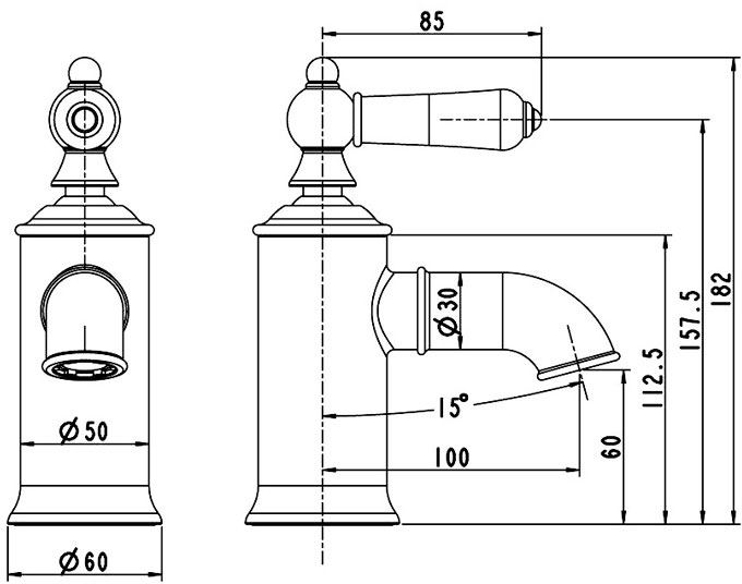 Смеситель Bravat Art для раковины F175109C – это уникальный атрибут в ретро-стиле, который будет прекрасно смотреться в дизайн-проектах а-ля модерн, ар-деко, ар-нуво и других оригинальных интерьерах. Внешне похож на стилизованную ретро-колонку, имеет небольшую высоту в 6см и излив длиной 10см. Однорыжачное управление выполнено в форме эргономичной ручки с керамическим покрытием – такой рычаг хорошо ложится в руку и позволяет быстро и легко настроить поток воды.